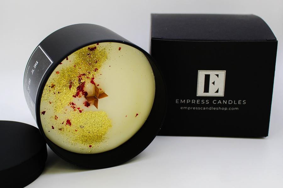 Natural Nontoxic & Vegan Long Burning Time Spiced Honey Tonka Oud "My Happy Place" Candle - Empress Candles